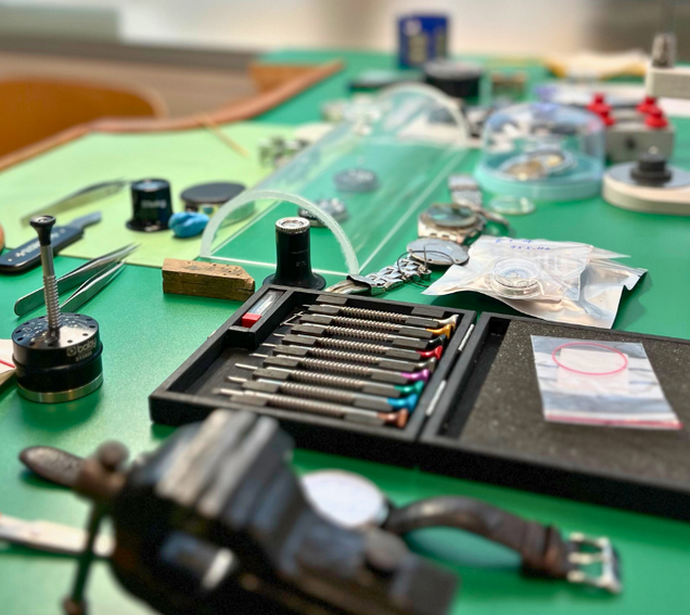 Nous prenons également soin de vos trésors grâce à notre service de réparation expert : changement de pile et de bracelet, réparation de vos montres et bijoux, et expertise de vos pièces précieuses. Nos services de qualité et notre passion pour l’art horloger et la joaillerie vous garantissent une expérience unique, personnalisée et au plus haut standard.